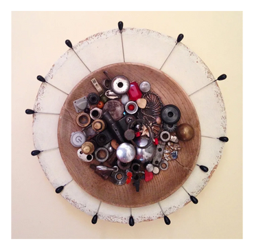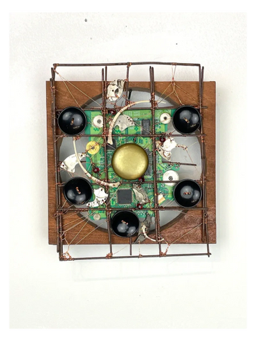 The Cypher Wall has been an ongoing installation since 2004 comprised of individual assemblages that can stand alone or be composed into groupings.